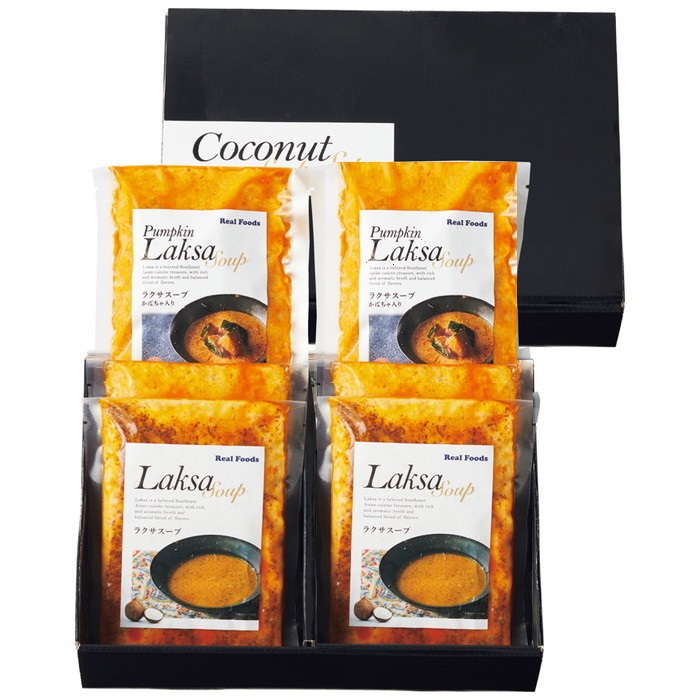 無添加のココナッツミルクをぜいたくに使った冷凍スープ2種のセット(180g x 6個)。ラクサスープ(3個)、ラクサスープかぼちゃ入り(3個)。